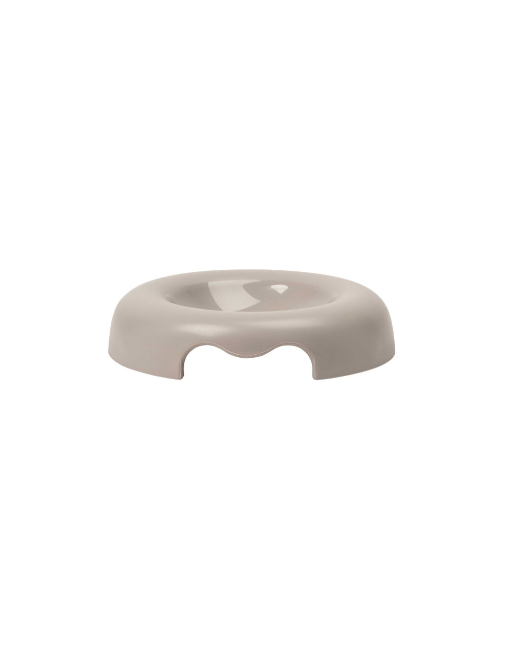 Kitty cat bowl, made of food-grade polypropylene and indestructible. It is dishwasher safe and has a non-slip base with rubber feet. Its flat design allows cats to eat without contact with their whiskers.