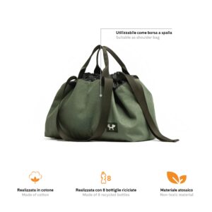 La borsa trasportino per cani nasce dalla collaborazione fra TUCANO e UNITED PETS. Realizzata in canvas di cotone con doppia maniglia in nastro e chiusura a coulisse, unisce praticità e stile. La fodera interna in tessuto riciclato rende il trasportino una scelta sostenibile, mentre la base rigida assicura stabilità e comfort. All’interno è presente un gancio per la pettorina, così puoi viaggiare in tutta tranquillità. I manici lunghi permettono di portarla comodamente sia a mano che a spalla. Spaziosa e leggera, è perfetta per spostamenti rapidi o passeggiate in città con il tuo cane. Capacità di trasporto: fino a 8 kg.