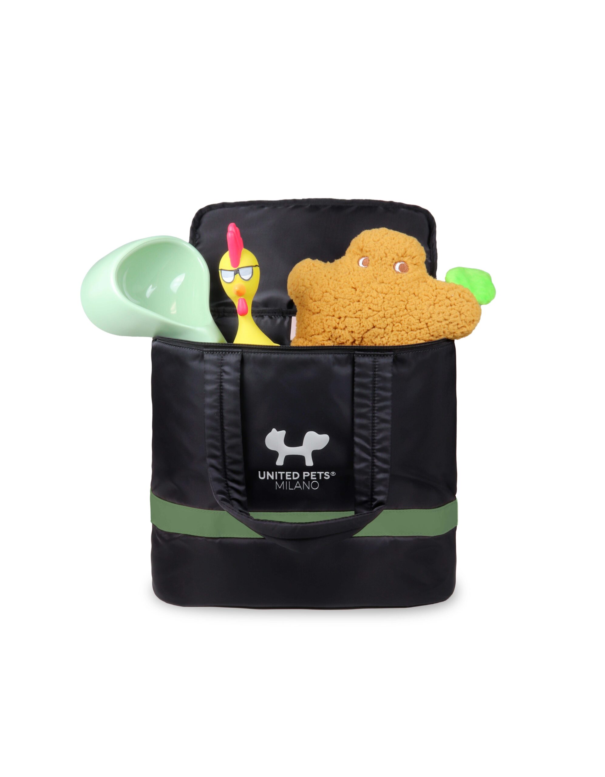 Borsa da viaggio ideale per trasportare gli accessori e i giochi del tuo pet, facilmente lavabile ed agganciabile al trolley grazie alla comoda fascia posteriore. Realizzato il tessuto riciclato al 100% dalle bottiglie in PET.